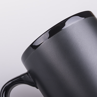 Becher mit matter Glasur außen, glänzende Glasur innen und am Henkel