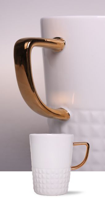 Handmade - Farbauftrag auf dem Becherrand und Prägungen |