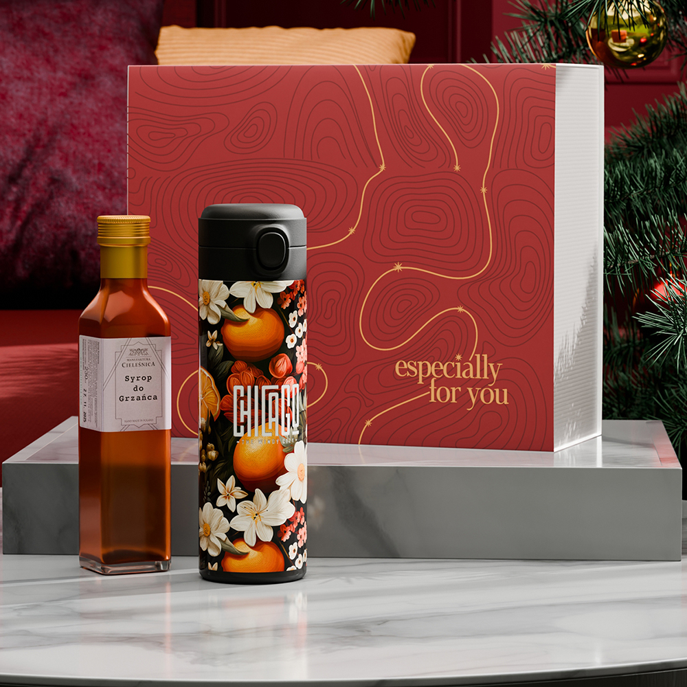 Ein perfektes wärmendes Set für Ausflüge – bestehend aus dem Thermobecher Orion, der sich ideal für raffinierte Verzierungen eignet, sowie einem aromatischen Glühwein-Sirup, der den Geschmack von Tee, Kaffee, Rotwein oder Desserts verfeinert. Das Set ist in einer speziellen umweltfreundlichen Snowy-Verpackung verpackt und wird durch eine elegante, personalisierte Banderole abgerundet. DIE DARGESTELLTE VERZIERUNG DIENT NUR ZUR VERANSCHAULICHUNG UND IST NICHT IM PRODUKTPREIS ENTHALTEN. DAS SET IST IN EINER SPEZIELLEN SNOWY-VERPACKUNG MIT EINER AUSGEWÄHLTEN VERZIERUNGSOPTION ERHÄLTLICH.